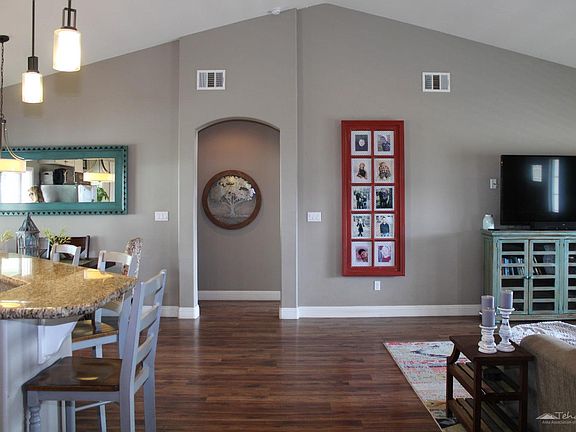 Beautiful custom home nestled in the quaint community of Fair View Ranches. Enjoy the seclusion of Mountain Living while only being 15 minutes from the 58 freeway.1.96 Acres of flat useable land. 2348 sqft 3 Bedrooms 2 Bathrooms/ Family room, Den and Office. Beautiful kitchen with large island open to Family room with vaulted ceiling and can lighting. Oversized den with large windows that give you remarkable views of the mountains, Primary suite is oversized with French doors that open to the front porch. Large tile shower oversize double vanity and additional counter size height vanity, Sliding glass door off the kitchen opens to a large covered patio, backyard has vinyl fencing , automatic sprinklers. Shed and chicken coop stay.