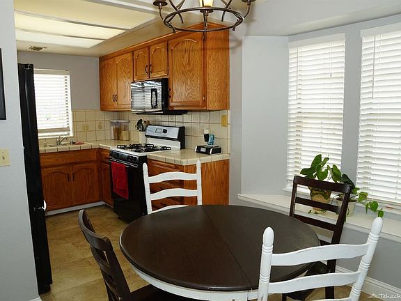 Darling home on almost 1/2 an acre of flat and usable land in Stallion Springs. This home features tile floors and counters, with carpet in the bedrooms. The efficient kitchen has tile counters and a breakfast nook, alongside a formal den/dining area. High ceilings throughout and many windows give the home an abundant light and airy feeling. Low maintenance front yard with plenty of room for RV parking, and mountain views surrounding the entire house make this home a little piece of paradise. Clean and move in ready!