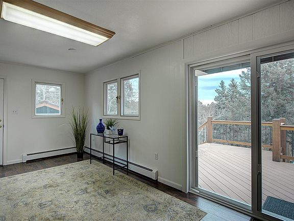 Enjoy your morning coffee and the views from the huge, multi-level deck overlooking a beautiful private acre. This home has a lot of potential and great location; private but still close to schools and shopping. Original wood floors on upper/main level are newly refinished, new wood laminate floors in kitchen. Upper level has kitchen, living area, bedroom, laundry and full bath and new paint and trim. Lower walkout level with in-floor radiant heat has master bedroom, 2 office areas, another laundry and ¾ bath. New exterior paint 3 yrs ago, newer boiler and hot water heater, newer metal roof and whole house generator are just some of the improvements made in the last couple of years. Jetted hot tub on the covered deck at the walk out level. Detached oversized garage has covered breezeway into the house. Paved drive makes for easy access.