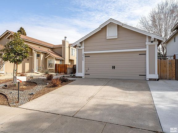 Fabulous Move-In Ready Home with Modern Upgrades & Low-Maintenance Yard! Step into this super cute and clean home that has been remodeled within the last 5 years. The kitchen features new cabinets, granite countertops and new appliances including a new refrigerator, electric range, and garbage disposal. Both bathrooms have been updated with new vanities and toilets. The primary bathroom has been fully upgraded with new fixtures and hardware, a new bathtub and tiled shower., The living room features high ceilings and abundant natural light making the space feel even larger. The home has new flooring and lighting throughout. A brand new AC was just installed this year. The furnace was manufactured in 2020 and the water heater in 2019. The easy to maintain and beautifully designed xeriscaped yard is ready for your next get together with its newly added back concrete and flagstone patio. The owner has also added a beautiful retaining wall, concrete along the side of the house as well as widened the driveway. The home also features a new washer, dryer and blinds. And, you don’t miss the unique Harry Potter Room! Conveniently located just minutes from shopping, dining, parks, and Reno-Tahoe International Airport, this move-in ready gem is waiting for you!