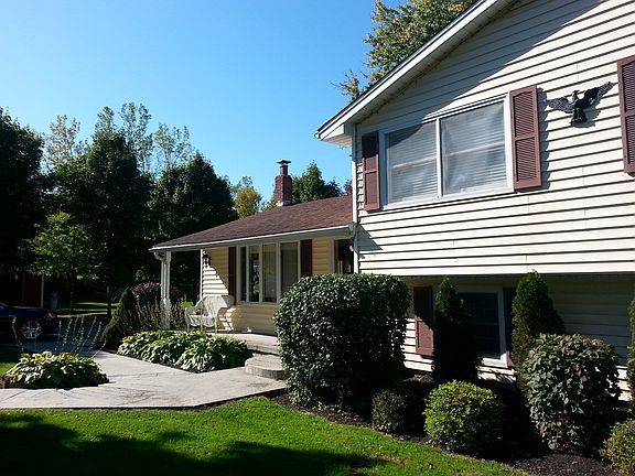 Well maintained 3BR, 1.5 bath, split level built in 1978, on 4.8 manicured acres. Newly updated open concept kitchen with stainless appliances,large island and laminate flooring. Spacious family room with WBFP. Bedrooms have new laminate flooring and plenty of storage. Fresh paint throughout. Full basement partially finished with bilco doors. Covered front porch. French doors leading to back deck overlooks pond & acreage. Exterior features a 24 x 32 x 12' Parco pole barn (2000) with concrete floor, power, cable, phone, workshop & loft. Detached 2.5 car garage (1987). Newly paved, stamped walkway and extra wide driveway (2012/13) extends to barn. Beautiful park-like setting and large pond. Maintenance free vinyl siding and architectural roofing. New sand-filter septic system (2009). Barker school district.