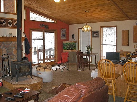 PRICE REDUCED!! Secluded ranch style cedar cabin borders 33+ acres of Open Space that leads directly into Nat'l Forest. Features T&G ceiling, wood stove with fieldstone accent wall & mantel, copper sink w/waterfall faucet in the full bath & a large wraparound deck. Open kitchen features tile countertops and a breakfast bar. Easy year round access only 35 minutes to Breckenridge, and 30 minutes to the Arkansas River and Buena Vista. Area features 7 stocked fishing ponds & miles of hiking trails.
