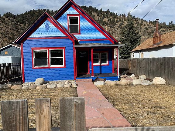 Be the first to live in a newly remodeled 1898 home in Idaho Springs! On a quiet street in the upcoming East end of town. Four Bedroom and Two Bath. Home has undergone a down to the studs renovation - nothing left untouched! Modern finishes mixed with classic charm. All new high efficiency windows and white cordless blinds throughout including three skylights to capture all of the natural light. Recessed Lighting with 3 ceiling fans on entire main story and soft gray paint throughout. Narrow plank hickory hardwood floors and luxury vinyl plank on the main level of home and luxury carpeting upstairs. Mission style trim on all doors, windows and baseboards. Beautiful entry craftsman doors, and T style mission doors. Separate mudroom and laundry area equipped with a steam dryer and storage cabinets. Open concept living room and kitchen area. Large kitchen with blue dune granite counter tops featuring full height back splash, concrete farm sink with garbage disposal, white shaker cabinets and full set of black appliances including dishwasher, range and oven, microwave with hood, and full size fridge/freezer. Kitchen also includes a custom built gray shaker cabinet movable butcher block island for seating, cooking and extra storage. Kitchen large enough for dining table if you wish. Downstairs bathroom has a cast iron shower/tub combination with granite surround and a large double sink vanity with black granite top, white quartz back splash, and plenty of lighting. Master Bedroom connects to main bathroom and has a large windows overlooking reclaimed Idaho Springs sidewalk flagstone patio and a sizable sliding four door closet with lighting. Additional downstairs bedrooms has beautiful reed glass french doors, a vaulted ceiling and a walk in closet would make a great media/office room if not used as a bedroom. The stairs leading upstairs have modern pipe railings and a skylight overhead. Upstairs bathroom has full size farmhouse vanity with black granite top and walk in shower with marble subway tile surround and penny tile skirting on top. Each bedroom upstairs has a double hung egress window, a skylight, ceiling fans and closet space. Even a bonus area upstairs for perhaps a reading nook, office or shelving. Home has new high efficiency furnace and electric hot water heater. All new electrical, plumbing and insulation. Storage shed outside for bikes and sports equipment. Landscape includes a custom flagstone walkway entry, front porch, fully fenced yard, a flagstone stepping stone path, xeriscape on side/back yard, separate planting areas and not one but two custom flagstone patios in back one constructed of salvaged sidewalk pieces from downtown Idaho Springs. Sod in front of house and plantings to be installed next spring by a professional local landscape company. Yard and plantings have full irrigation system for ease of care. Close proximity to Evergreen, Denver, Arvada, Lakewood, Littleton, Golden, Black Hawk and Central City. Landlord pays for water and sewer. Tenant pays for trash and all gas/electric. Cats are allowed for additional pet deposit and monthly pet rent. Deposit is $3250 due upon lease signing. No smoking anywhere on property.