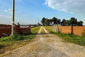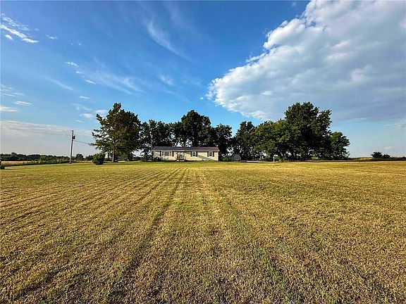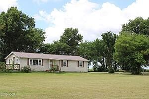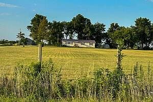 Enjoy country living on just a 1/3 mile dirt road! This 3-bedroom, 1-bath home is off the road and up a long lane. It features a living room with a built-in entertainment center and wood and vinyl floors. The property includes a detached two-car garage, two outbuildings, and a frame for a third one. There is a farm pond on the property's northwest corner. There are three working outside lights for security. The perimeter is fenced with barbed wire for livestock if you want them.