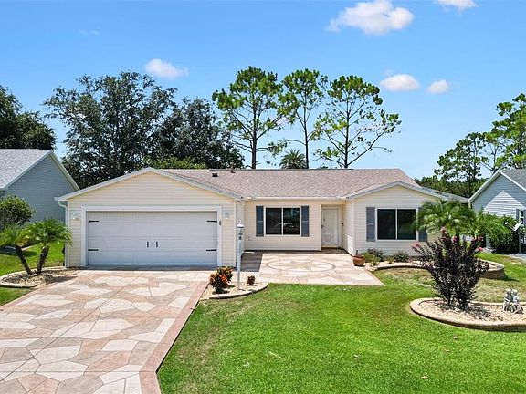 One or more photo(s) has been virtually staged. **BOND PAID* *NO REAR NEIGHBORS, and *NO KISSING LANAI for exceptional privacy and peaceful living. **UPDATES & FEATURES INCLUDE: *ROOF 2020 *HWH 2014 *HVAC 2014 *Updated KITCHEN w/Solid Wood Cabinetry to the ceiling *Florida Room Expansion *Living Room Bump-Out–84 sq ft *New Hard Roof Bird Cage *Whole-House Water Filtration System with Softener & Reverse Osmosis *Fresh Interior Paint July 2025 *New Attic Fan & Aroshield Multi-Layer Insulation March 2024 *Gas & Electric Options Available *Landscaping by Village Palms 2022 *Concrete Stamped Driveway, Birdcage & outdoor Patio. See attachment for full list of Upgrades & Improvements. A MUST SEE! This charming Stetson III/Amarillo Designer Home is nestled on a UNIQUE, PARK-LIKE OVERSIZED LOT in the highly desirable Village of Alhambra. The 2021 CUSTOM KITCHEN is a true showstopper—featuring solid wood, ceiling-height cabinetry with soft-close drawers and doors, and granite countertops throughout. A solar tube in the main living area floods the space with beautiful natural light. The popular SPLIT FLOOR PLAN provides ideal privacy for guests, while the CUSTOM EXPANDED Florida Room under air adds an additional 210 sq ft of year-round living space. The stamped concrete driveway and patio create stunning curb appeal and a polished outdoor area for entertaining or relaxing. Hard Roof 150 sq ft Birdcage added an additional area to kick back & relax in your private backyard. Whether indoors or out, this home offers the perfect blend of comfort, quality, efficiency, and resort-style living in one of the most sought-after Villages locations. Close to The Savannah Center, Glenview Country Club, Villages Hospital and all the shopping you need 5 minutes away! This immaculate move-in-ready gem won’t last—schedule your private tour today! *Seller will consider Long Term rental*