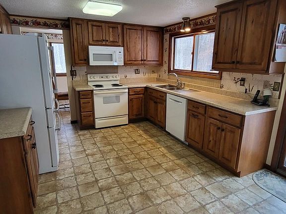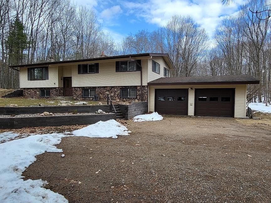 This split level home offers 3 bedrooms, 2 full baths, 19+ acres, AND lake views*. It's not too good to be true!! Though in need of some updating and freshening up, this solid country home on S. River Road offers a great opportunity for privacy, seclusion, and wooded room to roam. The main level features a bright & cheery living room, adjoining dining room w/ backyard views, a Frasier kitchen w/ beautiful beechwood cabinetry & included appliances, direct access to a spacious back deck, two bedrooms, a full bath, and a primary suite. The lower level provides a family room w/ toasty wood-burning stove, a spacious hobby room w/ direct access to the attached 2-car garage, and the laundry & utility room w/ walkout to the backyard. The exterior enjoys mature mixed tree cover w/ a 48x54 fenced garden space, a 23x55 outbuilding great for toy storage, rolling topography teeming with wildlife, and scenic views* of quiet Loon Lake just across the road. ***Home does not have lake frontage.