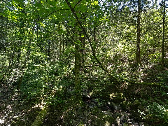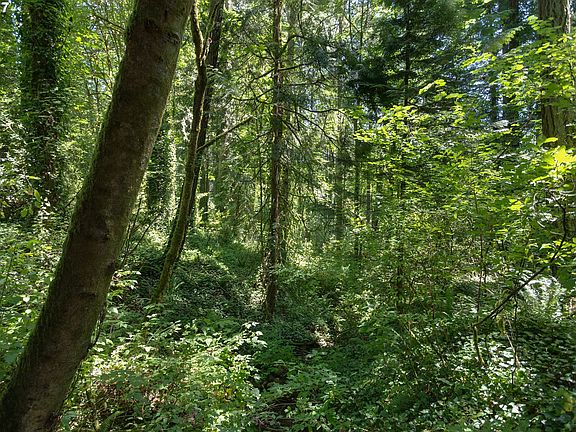 Ranch home with daylight basement. Home sits on one acre in old growth forest with a creek.