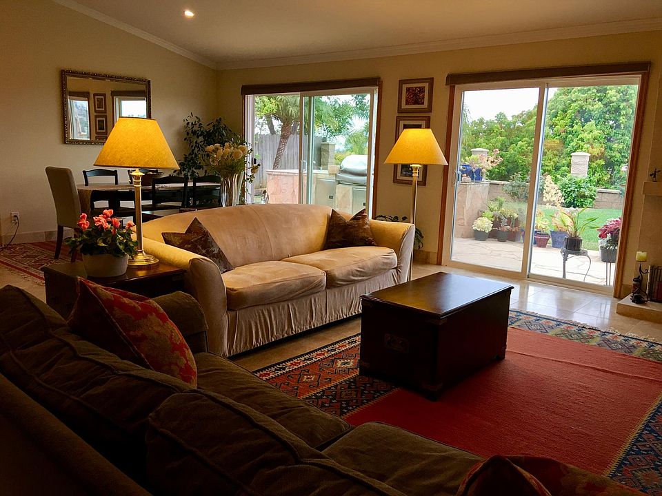 Beautiful 3Br/2Ba house in Carlsbad with great views! Three bedrooms, 2 baths, single-story house, with an open-floor great room for modern living. Unfurnished. Panoramic view of open space preserve and rolling hills from the living room, master bedroom and back, and side yard. Peek ocean view. View of Oceanside's July 3rd fireworks from the backyard! Located at end of a quiet cul-de-sac. Thick, lush tropical landscaping invites you inside to an open and spacious layout of the living room, dining area, and kitchen. Granite countertop in kitchen and bathroom, Viking professional stove and oven, modern KitchenAid fridge, travertine floors throughout the house, vaulted ceiling. Lusciously landscaped backyard with fruit trees, roses, and many other plants (landscape service included). Backyard with built-in bbq, sunsets galore. MUST SEE! Attached tiled 3 car garage with additional storage and insulated doors. Front-load Samsung Washer and Dryer. Quiet neighborhood, three mins walk to Hidden Canyon community park. Three miles to downtown Carlsbad and beach. Convenient access to I-5, 78, and railway station. Carlsbad schools (e.g. Hope Elementary) No smoking Rent per month with 12-month lease (landscape service included). Rental insurance required upon move-in. Deposit: 1 month's rent. Indoor cat(s) OK upon approval ($500 per cat). Please consider the following before submitting and paying for a rental application: Anyone aged 18 or above who will be residing at the property must submit an application. We will (1) check your credit report with a credit score of 720; (2) check for any past evictions; (3) verify your employment, if applicable; (4) verify income is sufficient; (5) your previous landlord references; and (6) perform a criminal background screening.