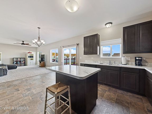 Welcome to this impeccably maintained 4-bedroom home (plus a loft) that is only 7 years old with Minooka Schools and NO homeowners association. In the highly sought-after Woods of Aux Sable Subdivision, this spacious home, with the potential to convert the large loft into a 5th bedroom, has been lovingly cared for by its original owner who has ensured that it remains in pristine condition. The property has been a pet-free and smoke-free environment in both the home and the garage, emphasizing the meticulous care it has received. The kitchen, the heart of the home, is a standout feature showcasing a wealth of 42" espresso-colored cabinets, including the coveted pantry cabinets, an inviting island for additional seating and counter space, and a designated area for your kitchen table. This kitchen is a homeowner's dream, perfect for both cooking and entertaining. Nestled on an expansive lot of nearly half an acre, this property offers abundant outdoor space for your enjoyment. The large shed, situated on a concrete slab, boasts 10' rafters with added storage space above, complete with a roof vent. Its siding and shingles harmonize seamlessly with the home's exterior, ensuring a unified and visually pleasing appearance. The combination of vinyl siding and brick and beautiful landscaping adds to the home's charming curb appeal. Notably, this property is free from the constraints of an HOA, granting you the freedom and flexibility to make it your own. The outdoor space is a genuine oasis, featuring a spacious 16 x 24 free-floating deck with anodized aluminum powder-coated rails, adorned with solar lights. Adjacent to the deck, there's a 15' brick and stone pad, ideal for arranging your chairs and creating a cozy gathering spot around a firepit or a small inflatable pool. For those who enjoy DIY projects or need a workshop, the fully insulated 2.5-car garage offers an ideal space. Modern conveniences are at your fingertips with a Ring doorbell and a Nest thermostat to ensure your home is comfortable and secure. Furthermore, Bali blinds have been tastefully installed on all windows, providing both privacy and a touch of style. This home also features a generously sized unfinished basement with roughed-in plumbing, ready for the addition of a third full bathroom. This residence is thoughtfully designed to offer comfort, style, and versatility, making it the perfect place to create cherished memories with your loved ones. Welcome to your new home!