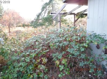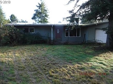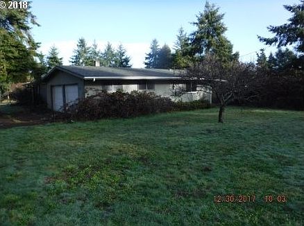 Single level home on 1.24 acres. Fruit trees, covered deck and patio, vinyl windows, laminate flooring, heat pump, island kitchen, large bedrooms, outbuildings, quiet dead-end street. Two car garage. Blackberries need to be tamed. Interior needs TLC.