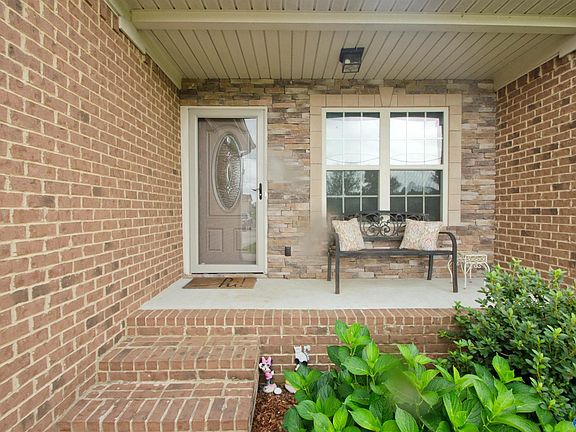 This brick home with stacked stone front porch offers 3 BR, 2BA with great open floor plan. Family room has wood floors, trey ceiling with fan, crown molding. The kitchen has granite countertops, pendant lighting over bar, stainless steel appliances and tile floor. The dining area has wood floors crown molding and french doors leading outside to wooden deck. Isolated master suite has trey ceiling ,fan, walk-in closet and crown molding. Master bath has double vanity granite countertops with tile floors, linen closet. Laundry room has tile floors and utility sink. Double car garage with 12x12 detached building in back. Large back yard.