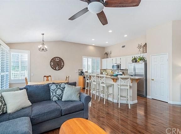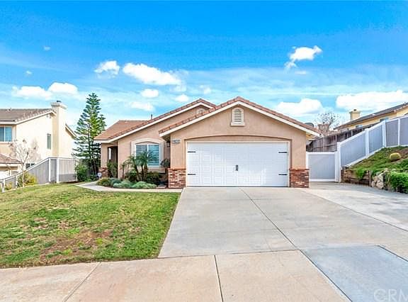 Welcome to this beautiful, well maintained home in Horse Thief Canyon. This single story home has great views of the gorgeous surrounding hills, noted for the poppy flower blooms, from the backyard, and is 1442 square feet with 3 bedrooms and 2 bathrooms, offering an inviting open floor plan. Open from the front door entry to the Living room, dining area and kitchen. This open and full of sunlight area is enhanced by plantation shutters, the plantation shutters are throughout the house, laminate floors, a media area, cozy fireplace and a sliding glass door to the backyard. The kitchen is equipped with a 5 burner stove, microwave, dishwasher, granite counters with a full back splash. and a great pantry closet. The master bedroom is spacious, has a sliding glass door to the backyard, a good sized closet, dual vanities in the master bath and a walk in shower. The meandering and inviting patio in the backyard has a electric controlled awning for shade on the warm summer days. There is also a 9X12 shed "man cave or she shed" in the backyard and a "just under 10 foot" wide opening with a gate for possible small RV storage on the driveway side of the yard. Don't miss this opportunity to enjoy the lifestyle benefits of Horse Theif Canyon, offering a resort style Clubhouse, Gym, 2 swimming pools, tennis courts, dog park, basketball, volleyball courts and walking trails for a very low monthly HOA fee.