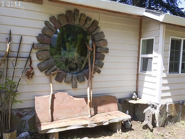 Open Floor plan, French doors and artists lighting! Reclaimed wood wainscoting, Stone Hearth, accents, and carvings with light and open floor plan. Your charming home in Timber awaits you! Attached greenhouse to home and other plant growing improvements on property. Pond and territorial views of the town of Timber.