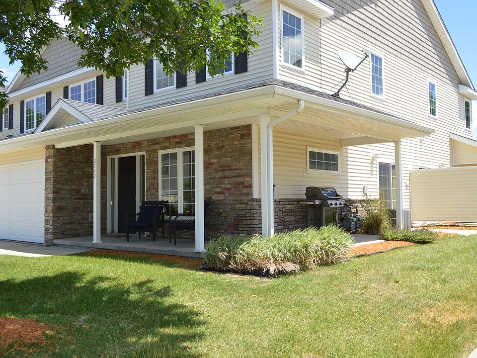 Beautiful two story end unit townhome in Prime Clive LOCATION! Fantastic WRAP-AROUND PORCH that sets the stage for a large living room w/ 9' ceilings and a direct vent gas FIREPLACE! Over 1400 sq ft in this OPEN FLOOR PLAN. Amazing kitchen w/ MAPLE cabinets and upgraded STAINLESS STEEL APPLIANCES. Attractive ceramic TILE floor in kitchen, half bath, laundry & foyer. Enjoy entertaining out on your PATIO just off the DINING ROOM. Two BIG bedrooms each have its own PRIVATE BATH! Master features tray ceiling, natural light delivered through 4 bright windows, and TILED SHOWER w/ twin shower heads. Easy access to parks, walking trails, and shopping! Pet friendly! Call TODAY!