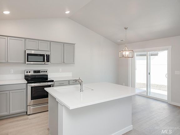 This new home located in beautiful Kuna, Idaho has all the comforts you need & more!The Harlow 1364 is the quaint split bedroom you've been waiting for! Enter inside and be welcomed with 8' ceilings and an entryway that leads you to the heart of the home. The open concept living area & kitchen are at the rear of the home, so the hustle & bustle of the world can melt away. The kitchen comes with stainless steel appliances and stylish solid surface countertops, adding both functionality and aesthetics to the kitchen. Easy access to the patio from the dining area makes enjoying the outdoors a breeze. Escape to the primary suite at the end of the day, where the en suite bath offers dual vanities and a walk-in closet provides plenty of storage. Photos are similar. All selections are subject to change without notice, please call to verify.