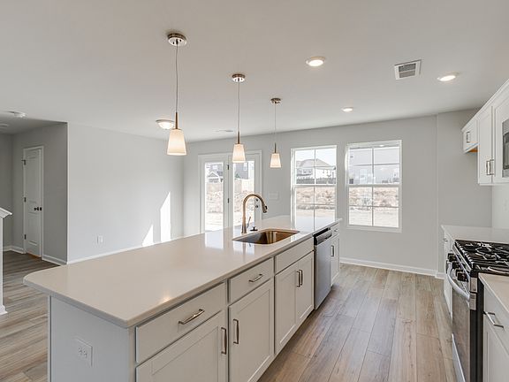 The two-story McDowell is a five-bedroom, three-bathroom home. The large great room opens to the kitchen and features upgraded cabinets and countertops, a stainless steel gas range, and an expansive island. The main floor also holds a guest bedroom and a full bath. Upstairs, you will find a spacious primary suite, three secondary bedrooms, a loft, a secondary bathroom, and a spacious laundry room. Beautiful luxury vinyl plank flooring runs throughout the main living spaces. The outdoor space is accented by a large patio space, perfect for entertaining!