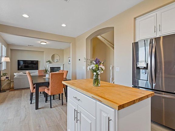 This meticulously maintained 3-bedroom, 3-bath residence showcases a model home aesthetic. Upon entering, you'll be greeted by high ceilings, abundant natural light, and an open floor plan. Recently installed upgraded luxury flooring flows throughout the entire house. The beautifully upgraded chef's kitchen features granite counters, enhanced cabinetry, a spacious walk-in pantry, and a butcher block center island. The kitchen seamlessly connects to the charming living room, complete with a cozy fireplace.Upstairs, there's a nook that serves as an ideal office space or sitting area. The main suite is spacious and bright, boasting two large walk-in closets. The suite's bathroom resembles a spa, featuring a sunken tub and dual sinks. The two additional bedrooms are also generously sized. The entire house is enhanced with modern high end interior paint, led lighting, upgraded lights and fans. The backyard is beautifully landscaped, creating a mini park-like atmosphere. It is large and private, with no neighbors behind the house, offering breathtaking mountain views. This home is truly a hidden gem. Walk to the park just steps away in Ana Verde. Located close to the 14 freeway, the mall, shopping, lots of dining options, NGC and Lockheed Martin worksites. Location on this house is everything! Take a Look at the 2 virtual walkthrough tours and the video!!