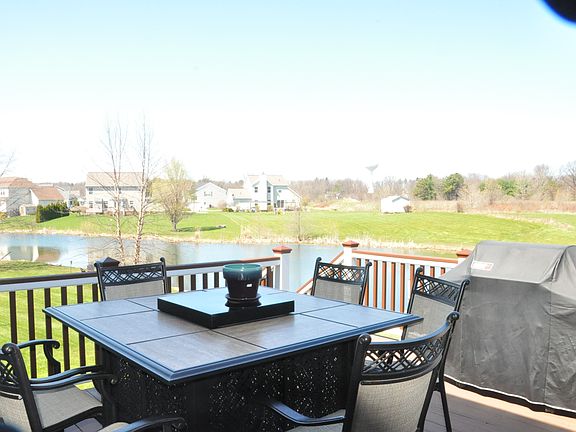 Former model home featuring 4 bedrooms, 3.5 baths located in the desirable Lake Township, Lake Local School district, Stark County, Ohio. Waterfront lot featuring private dock and stocked pond. Outdoor amenities include 16 x 12 Screen Porch with electricity, 16 x 15 2nd story deck with new Trex system vinyl railings, concrete patio on lower level. Custom stone retention wall for additional parking. Open floor plan featuring large great room with coffered ceilings, built-in entertainment center and floor to ceiling stone gas fireplace. First floor master suite features walk-in closet, master bath with jetted tub, shower, separate bath vanities. Office features built-in desk and oak ceiling. Formal dining room. First floor laundry and locker room. Large gourmet kitchen with dining nook and walk in pantry. 2nd floor features 3 bedrooms with walk-in closets, loft and full bath. Finished basement featuring 1400 square feet of fun! Built in wet bar, stage with dance floor, gas fireplace surrounded by custom built cabinets, full bath including shower, pool table, windows with beautiful views of the water and lots of storage. This home also features Invisible Pet Fence, Home Security System with cameras, Lutron whole house lighting system, 3 car garage, outdoor hot and cold water hook-up, city water and sewer. Must see, call today for your showing. Outstanding price per square foot!
