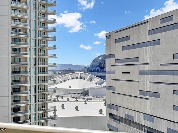 Experience luxury highrise living with 3 bedrooms/3 baths and 2805 square feet. Unit has its own private elevator lobby and interior paint has been refreshed. Unit includes granite countertops, stone flooring, crown molding, fireplace, 2 terraces, and partial views of the Sphere.