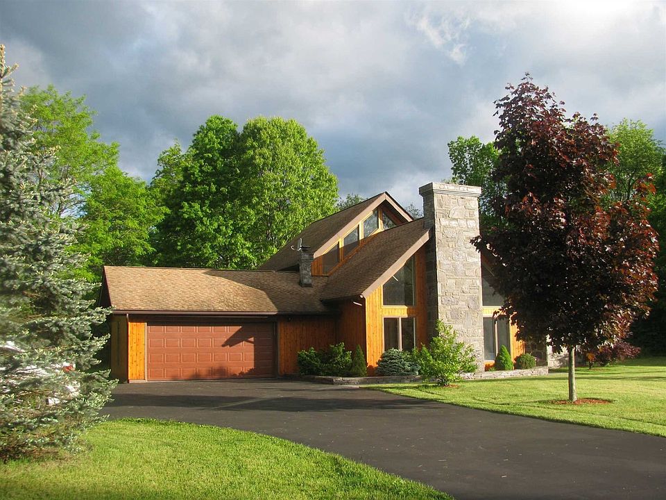 Custom Built - One of a Kind. First time on market! Original Owners Meticulously updated and cared for this Beautiful Cedar Contemp. Chalet Home. Built in 2000. Set back Perfectly off Road. Airy and Bright. Tucked away Privately on 6 Beautifully landscaped open and tree-lined acres. Main Floor Master Bed Suite leads to quiet rear Deck. All Baths Ceramic tile. All Flooring Quality Wide Board Hardwoods. 2 Story Great Rm w/Stone Fireplace you will love w/Wood Beamed Knotty Pine Cathedral Ceilings. Interior Balcony to 14x 10 Loft. plus 2 Addit Spacious Bed's w/Vaulted Ceilings & charming alcoves + the 3rd Bath. Fabulous Kit.w/breakfast area open to Family Rm. Doors lead to 40'Cedar Deck. 2 Car Att.Gar. Mud Rm, Lndry Rm.. Spacious Stone Patio too, offering Total Privacy to relax and enjoy! Ideal location. Only 5 Minutes to shopping/dining in the charming Historic Village of Rhinebeck. Perfect weekender or year round Home.