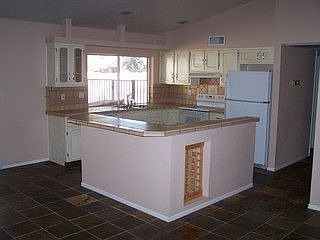 Total remodel inside to include slate tile flooring, new tiled kitchen countertops, new carpeting, updated bathrooms, and new interior paint. Kitchen has custom island/breakfast bar, and upgraded appliances. 6 panel doors, ceiling fans, and master bathroom with slate tile surround in shower are some more upgrades. Private MBR patio area. Large private corner lot with lots of grass and a sparkling fenced diving pool. Lender owned, but move-in ready. Home sold AS-IS.