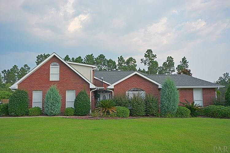 Sprawling home on large ONE ACRE parcel featuring GUEST SUITE and COURT YARD area and HUGE POOL. Floor plan is highly desirable triple split plan offering a large bonus room upstairs and a full wing guest suite with living room and full bath. KITCHEN~ High ceilings with center island and a multitude of cabinets and counter space. Smooth top range~ Built in microwave~ Stainless side by side refrigerator and dishwasher will convey with the home. Large hop up breakfast bar and oversized breakfast room which overlooks the patio and pool area. Large laundry and pantry offer plenty of storage while the stairs lead to an oversized bonus room (12x20) that has double french doors that open to a balcony overlooking the courtyard area. This is the only second level room in the home. Great room is open to the the dining and offers corner fireplace , vaulted high ceilings and double french doors leading onto the patio and pool area. There is a pool alarm connected to this door for safety with the little ones. Master suite is a great space with lots of natural light, a ceiling fan and two large walk in closets. Master bath features double vanity, shower and garden tub with diffused lighting from glass block window. Linen closet for your towels and toiletries so the counters stay clear. The unique feature of this home is around the corner from the master suite ~ Enter a bright sun room area with double french doors leading onto the courtyard ~ Through this area you have a large living room, sep. bedroom and a full sized bath. This space would be great for an adult parent, adult child or guest suite because it has its own entry area and it is completely away from the rest of the home. The lawn has been well established with ornamental shrubs and trees and the backyard patio area is over-sized and features a sparkling in-ground pool. GENERATOR for hurricane months and sprinkler system on a well for a year around green lawn. Side entry garage with extra parking~This one has it!