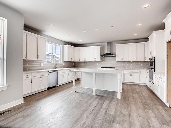 Move in Ready! Gorgeous 4 bed, 3.5 bath two-story home with 3-car garage and 8 ft. doors. Additional features include, a two-story expanded great room with fireplace, two staircases, gourmet kitchen with granite countertops, stainless steel Kitchen-Aid appliances with 36â gas cooktop and large island. Plus, a master suite with granite vanity tops, large walk-in closet and expanded basement with additional windows and a 9ft. ceiling. This gorgeous home also has front and back landscaping included. Located within walking distance of Aurora Reservoir with access to nearby Lake House and recreation center.