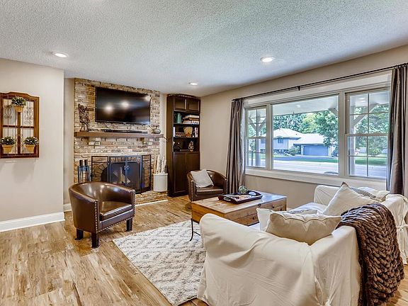 A welcoming front porch, this charming updated two-story home features a cozy wood burning fireplace in the living and decorative fireplace in the lower level. Bright, crisp white kitchen update w/new solid surface countertops, sink, faucet, light fixtures, disposal and new stainless Whirlpool refrigerator, microwave and stove arriving July 25th. There is luxury vinyl plank (life proof) flooring flows through the kitchen, living & dining rooms and six-panel doors throughout. Upper level features new carpet, ceiling fans in all bedrooms & full bath remodel in 2018. Ownerâs bedroom boasts a new built-in, custom California Closet System. Amazing three-season porch overlooking a fabulous large backyard w/updated perennial landscaping, adorable "She" shed, large concrete patio, fire pit and fenced backyard!! New roof, gutters and back siding in 2019. Home is conveniently located near a park & in the high demand #621 School District. Welcome to your new home!