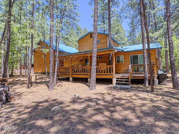 A relaxing escape awaits at this spacious log cabin-style home! This active Airbnb is being sold FULLY FURNISHED, ready for you to enjoy on Day 1! Surrounded by mature pines, hikers & mountain bikers have their choice of trails to explore. Golfers will love nearby courses, & anglers will enjoy easy access to several nearby lakes! Situated on a rare .41 acre cul de sac lot, the outdoor space includes a large covered deck, as well as a large, shady yard, complete w/ gas grill & wood-burning firepit! Inside, you'll find a well-appointed kitchen with breakfast bar & SS appliances. Interior was renovated between '17 & '19, the garage w/ studio loft, kitchenette, and bathroom above was added in '20! With a total of 5 BRs & 3 BAs, there is room for everyone! Enjoy Rec Center privileges too!