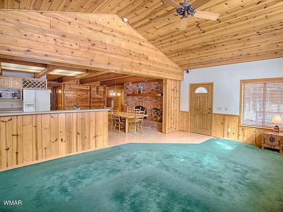 Cozy mountain property in Pinetop Country Club. Located on a premium lot with charming front porch to enjoy the beautiful weather and quiet cul-de-sac. Master bedroom & secondary bedroom on main level; upstairs you'll find third bedroom, full bath and loft w/fireplace. Functional floorplan features wood paneling & multiple fireplaces creating the perfect cabin getaway. Eat-in kitchen with plenty of cabinet & counter space. Master suite has french doors to back patio perfect for an extension of outdoor living.
