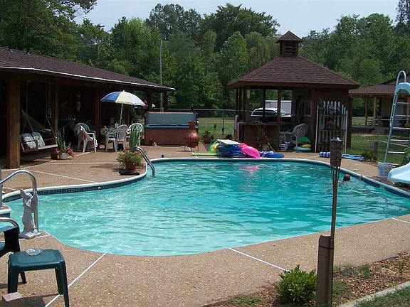 SO MUCH SPACE all on one level and a little over 7 acres! Unbelievable amount of storage in this brick home. Home features open kitchen/dining area, large utility room, cozy two-sided fireplace, pocket doors, lots and lots of kitchen cabinets and counter space. There are 2 bonus rooms (heated and cooled) in the attached garage, in-ground pool and pool house with 1/2 bath, and fenced yard. Detached garage has it's own H&A, large workshop area with lift (mechanic's dream). Great place to raise a family.
