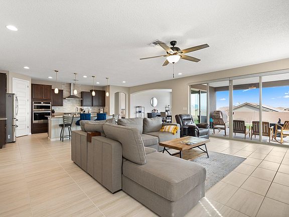 Stylish, single-level in the gated Redondo subdivision at Mariposa. Open kitchen features quartz counter tops, stainless appliances, custom backsplash, walk-in pantry & over-sized eat-in island overlooking the formal dining & great rooms! Chic electric shades on both sets of sliding doors. Office w/ newer wood tile floors. Generously sized, primary suite leads to the primary bath w/ 2 sinks, separate shower & tub + big walk-in closet! 2 guest suites are nicely separated from the entertaining areas . The 3rd guest suite has a private bathroom + walk-in closet= an attractive in-law suite! East facing backyard is fully landscaped, the covered patio is situated to capture fantastic views of the Sandias, Santa Fe & the twinkle of city lights. Schedule your private showing w/ a Realtor today!