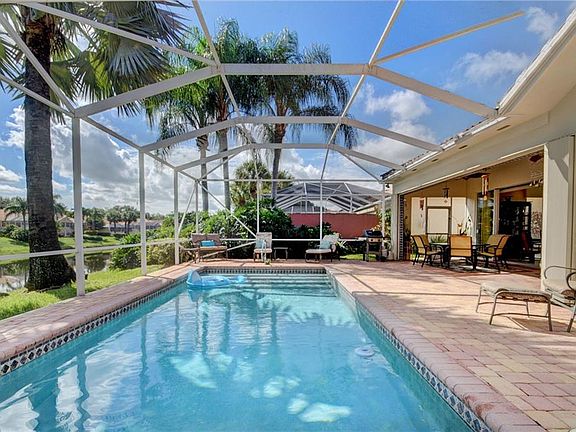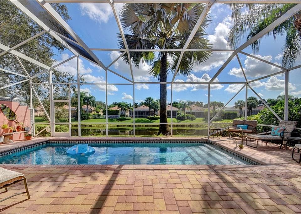 This OAKMONT has a heated pool! This most popular model is located in the resort style community of Riverwalk. Surrounded by a nature preserve, this active all ages community is the perfect place to live your best life. This home has 18 ft of glass sliding pocket doors to view the pool against the lake, enjoy the ease to truly have indoor/outdoor luxury living. The home boasts 12 ft ceilings which open up the entire space. Upgrades include: crown molding throughout, updated electrical to accommodate the generator, heat pump for the pool, built in wall unit, pull out kitchen shelving, new central vac system, granite counters. Riverwalk provides the Wifi, Cable, 24/7 manned security, full service restaurant, fitness center, hair salon, 8 Har-Tru Tennis courts, Pickleball! The wait is over! ASSUMABLE MORTGAGE at 2.375% This is not a typo!