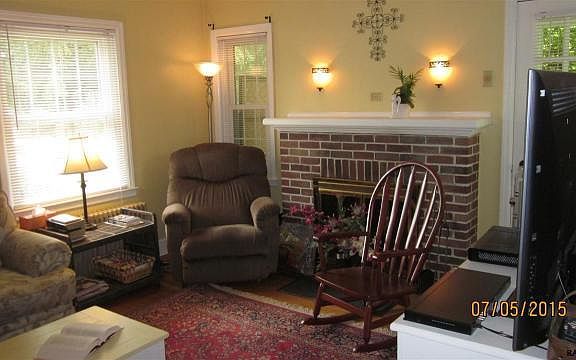 Light bright and beautiful for new beginnings with quick settlement. Hardwood floors, working fireplace, ceiling fans, side porch cool summer meals or relaxing.