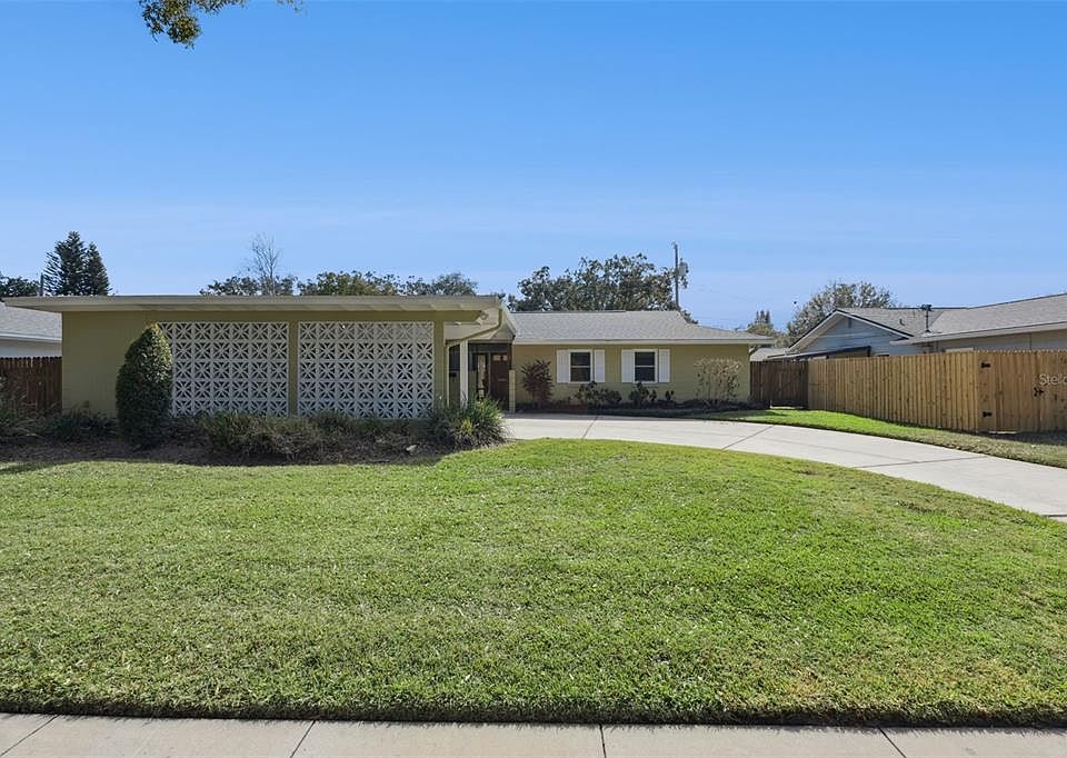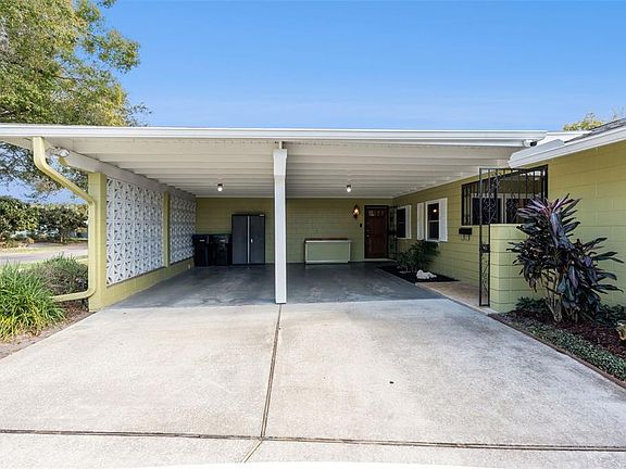 Welcome home to this charming 3-bedroom, 2-bath residence in the highly desirable, NO HOA community of Winter Park Pines, conveniently located near top shopping, dining, and entertainment options. A long driveway and mature landscaping create an inviting first impression, while the 2-car carport provides covered, secure parking. Inside, you’ll find an open floorplan enhanced by travertine tile and neutral paint throughout and abundant natural light pouring in through large windows and French doors lining the back of the home. The updated kitchen features new cabinetry, granite countertops, updated fixtures, white appliances, and a cozy dinette area, perfect for casual meals. The combination living and dining areas offer an ideal layout for entertaining and family gatherings, highlighted by a modern wood-burning fireplace that adds warmth and style. The dining room opens directly to the patio, creating seamless indoor/outdoor living. All three bedrooms are generously sized. The primary suite boasts a custom closet system and an updated en-suite bathroom with a single-sink vanity and large walk-in shower. The secondary bathroom includes a single-sink vanity and a shower/tub combination. Out back, an open patio overlooks a fully fenced yard, offering plenty of room to add a pool or simply enjoy a safe space for pets and play. A laundry room/workshop with mini-split, located off the kitchen and carport, provides exceptional extra storage and versatility. Double pane windows throughout and side sound and security windows provide peace of mind and lower electric bills. This well-maintained home blends comfort, functionality, and location—a wonderful opportunity in Winter Park Pines.