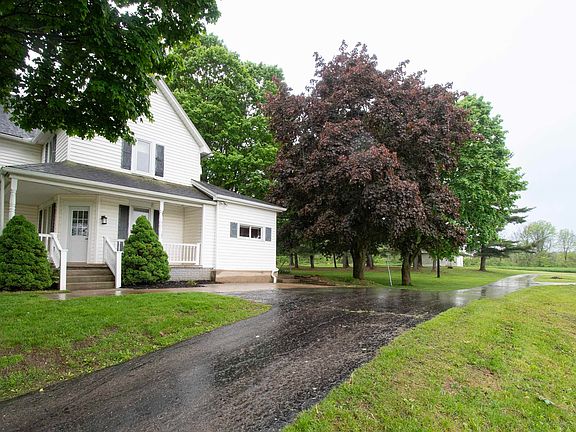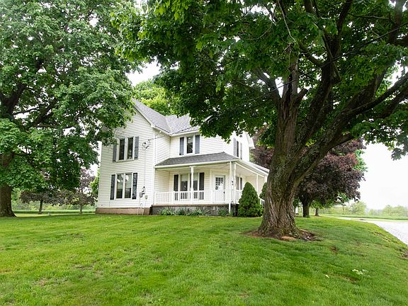 OPEN HOUSE:MAY 24, 2025 from 1 to 4pm. This peaceful country home sits nestled on 3 acres of rolling hills and views of hayfields and woods. With 3 possibly 4 bedrooms, one of which is on the main level and is connected to a full bath and laundry. A spacious living room and dining room, oak cabinets, oak woodwork and hardwood floors throughout most of the home. Electric/ Geothermal heating with Central Air. As you sit on the L-shaped front porch you will see mature shade trees and an asphalt driveway. From the back patio the sunsets are incredible!