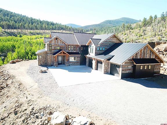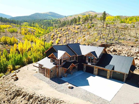 This Majestic “Mountain Modern” Home evokes true Rustic Charm with a Modern twist. This Magnificent home was completed in 2023, and is located in the heart of the Rocky Mountains. This property is listed below appraised value. One could rent this home out for periods of 30 consecutive days or longer if desired. This nearly 10-acre parcel of land borders national forest on two sides and offers great privacy with amazing views with your nearest neighbor being a half mile away! The property also features over 1300+ feet of Willow Creek that you would own on both sides. Wolf Creek Ski Area receives the most snow in Colorado and is approximately 30 minutes from this Ski Area. The town of South Fork is about 10 minutes from this property. The home has posh finishes throughout. Most of the exterior barnwood has been taken down from many farms around the area and re-purposed on this home as siding. Inside the home features many exclusive features such as 150-year-old reclaimed Oak flooring, natural slate stone columns plus a large variety of 100+ year old Amish beams. The bathroom floors and walls feature over 12,000 lbs. of Carrara White Marble. This home has ten-foot ceilings throughout with over a 25-foot vaulted living room. The living room and garage ceilings are lined with Cedar wood so you can enjoy the great aroma of the forest on the inside! There are plenty of cabinets for storage which feature over 9 jumbo slabs of quartz countertops! The kitchen features an amazing full slab waterfall edge island backed by a huge pantry and many great appliances such as a 60+ inch fridge/freezer combo, 48-inch cooktop, ice maker etc. and built in breakfast nook. The home features 5 bedrooms and an office that could be a 6th bedroom if desired. The open floor plan is perfect for entertaining family and friends in the mountains. This home features over 53 windows each featuring amazing views. The house has 4.5 baths with a lavish Master Bedroom featuring a large walk-in closet. The master Bath comes complete with a large jacuzzi tub and walk in shower. The Spacious heated 5 Car garage (2300 SF) is perfect for storing mountain toys like drift boats, rafts, snowmobiles, and side by sides. It also features built in 18-gauge cabinets to keep you organized during all four seasons. For outdoor entertaining there is a nearly 2,000 ft rear deck with incredible views overlooking the creek. The home also has a heated concrete Safe Room built into it that is approximately 300 sq ft. Willow Creek has Rainbow Trout & Brooke Trout in it, and one can watch them sipping flies from the surface on lazy summer days. Lots of wildlife can be seen on the property and the adjacent National Forest. Elk, deer, bobcats, and bears can all be seen traversing through the surrounding slopes and mountainside. If you are looking for a one-of-a-kind mountain home that affords incredible views, privacy, and impeccable finishes this is your answer. This is a rare opportunity to buy a new home in the Rocky Mountains of this caliber. Call to see this home today! This home comes fully furnished and ready to enjoy all the seasons. Willow Park is a gated community that is family friendly and a very realistic HOA. Home owners can enjoy free access to a private fishing pond and pavilion. Call to see this home today!