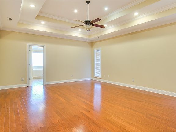 - MASTER BR DESC: Wood Floor, Ceiling Fan, Crown Mold, Recessed Lighting, Trey
