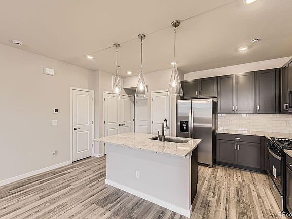 QUICK MOVE IN - PRICE JUST REDUCED! INTEREST RATE PROGRAMS AVAILABLE! Brand new 1,188 sq. ft. townhome with fully fenced in yard. The Bryant plan features 2 bedrooms, each with their own on-suite bathroom! Functional two-story floor plan features oversized living room and 9' ceilings on both floors! The island kitchen with pantry boasts many designer upgrades, including 42" upgraded cabinets, gas range, upgraded kitchen countertops, tile, carpet, and upgraded flooring throughout the main level. Owner's suite on upper level features walk-in shower with bench, dual sinks, and oversized walk-in closet. Second bedroom has it's own bath, and makes a great guest bedroom or roommate layout. Upstairs laundry is conveniently located near both bedrooms. Enjoy amazing community amenities including resort pool/hot tub, clubhouse, onsite fitness center, dog park, sand volleyball, basketball courts, onsite PK-8 school, and miles of trails right outside your front door!