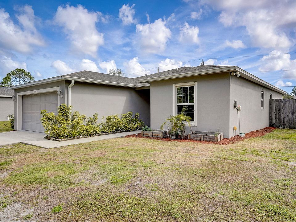 Welcome to your new home at 2749 Lansing Rd SE, Palm Bay, FL! This stunning property, built in 2020, awaits its lucky new owner. Step inside to discover a meticulously maintained interior boasting freshly replaced flooring and a vibrant, newly painted palette throughout. The open floor plan creates a spacious ambiance, perfect for entertaining or simply enjoying everyday living. The heart of the home is the upgraded kitchen, complete with sleek black appliances and ample counter space for meal preparation. Outside, the backyard beckons with its fully fenced enclosure, providing privacy and security for both pets and loved ones. Relax or host gatherings on the covered patio area, ideal for enjoying Florida's beautiful weather year-round. Don't miss out on the opportunity to make this charming property your own and experience the ultimate in comfort and convenience. Schedule your viewing today!