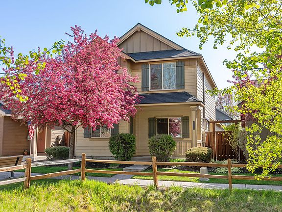 Welcome home to easy living in Redmond, OR! This move-in ready home offers effortless living with 3 bedrooms, 2.5 bathrooms, 1,397 square feet of comfortable space, plus an attached 2-car garage w/ room for storage. The bright living room features an open floor plan with a gas fireplace. The spacious kitchen comes complete with a functional kitchen island, wood cabinetry, pantry, and eating area. Upstairs, discover a convenient laundry room w/ incl. washer/dryer, the primary suite featuring a large walk-in closet and bath with walk-in shower, along with 2 well-sized bedrooms and full guest bath. Recent updates include: new roof installed in 2023 and brand new carpets in 2025. Outside, enjoy the mature landscaping that surrounds the property, the private side patio with garden beds, and covered front porch with views of the seasonal canal. Beyond your doorstep, this convenient neighborhood offers amenities, including a community pool, playground, and sport courts.