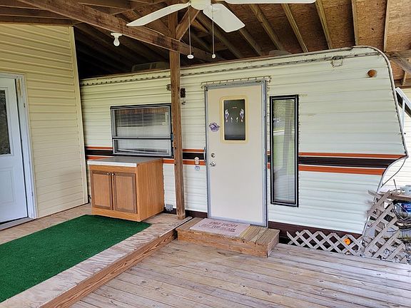 This property has three lots, 2 lots had a doulble wide Mobile Home on it but it was destroyed by the hurricane. The 2 lots are border by 2 dirt roads and 1 paved road,the electric and septic and water is still there ready for a new home. The 3rd lot has a work shop and storage with a small front porch and there is a one car garage with a roll up door attached to the garage is a deck that goes to a laundry room and half bath. There is a small travel trailer, in good condition, that is under a shelter that the owners stay in when they are here, There is an additional living room and a covered porch. This is a must see,