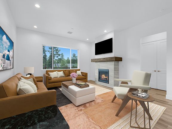 Immerse Yourself in Modern Mountain Living at Adora at Timber Sky. Newly built never lived in and ready to move in. This stunning 4-bedroom, 3-bathroom single-story residence (2,009 sq ft) embodies the essence of modern mountain living. Adora at Timber Sky seamlessly blends contemporary design with the breathtaking beauty of Flagstaff, creating a haven that inspires. Step inside and discover a light-filled paradise: Soaring 10' ceilings create a sense of spaciousness, while expansive windows bathe the interior in natural light, framing captivating mountain vistas as if they're an extension of your living space. Imagine cozy evenings spent with loved ones, enjoying the warmth of a fireplace while the majestic San Francisco Peaks shimmer under a star-filled sky