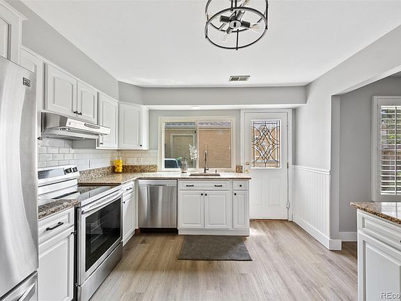 Welcome to this beautiful 3 bedroom, 3 bath townhome located in the desirable Dam East community. This end unit home has been completely remodeled, and has an open floor plan that flows seamlessly throughout! The main level is light and bright with new luxury vinyl flooring, high ceilings, a spacious living room, dining area, bedroom and main level bathroom. The open kitchen features stainless steel appliances, granite countertops, and modern white cabinets. Just outside the kitchen you will enjoy a private backyard and detached 2 car garage. Upstairs is a spacious primary bedroom, 3rd bedroom, and a loft that can be used as an office or could be closed off to add a 4th bedroom. This home boasts further bonus features: brand new interior paint, newer windows and shutters, new light fixtures, flooring, new bathroom vanities, newer furnace, water heater, A/C. This house has it all and is ideally located near parks, shopping, greenbelts, restaurants, major transportation routes, and Cherry Creek schools! Don’t miss the opportunity to make this incredible home yours!
