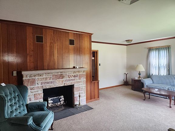 Neat as a pin! Brick ranch on .65 acre. 1 car integral, 1 car detached garage. Kitchen with all appliances. Dining room with bay window overlooking backyard. Large living room with woodburning stone fireplace. 3 bedrooms, 1 bath, hardwood floors, newer windows, heat pump w/central air. Basement has semi-finished rec room with pool table and 1/2 bath and laundry. Per seller, roof is 10yrs old, heat pump is 2 yrs old, driveway done 6 yrs ago, basement has french drains, flue on fireplace redone 10 yrs ago.