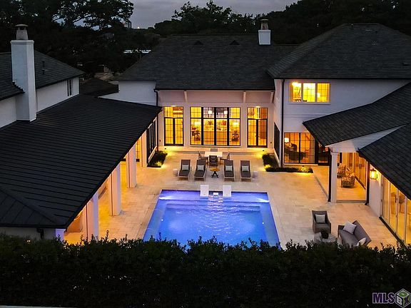 The height of luxury and comfort awaits you on this quiet corner lot in this exclusive estate in Bocage Subdivision, Baton Rouge. A 5-year plan was intricately executed with builder Anthony Turnley and Interior Designer Anne McCanless as together they created a one-of-a-kind Transitional- Modern home with pure Louisiana ambiance. A collage of timeless and classic styles was used throughout the design project to evoke elegance and peaceful escapes with an array of beautiful vignettes. The expansive open floor plan with walls of windows maximizes the panoramic views and sets up perfectly for large-scale entertaining or everyday living. The heated and cooled outdoor living area (1200 sf) with drop-down Phantom screens overlooks the pool and the immaculately groomed rear yard. This space includes top-of-the-line appliances, 2 massive chandeliers, and an oversized fireplace. The downstairs primary suite is tucked away and features a sitting area with a morning kitchen/Bourbon tasting area, his/her water closets, dressing areas, and huge walk-in closets. The home gym is just steps from this area of the home. Upstairs is a kid's dream game room, a bar area for game and movie nights, and adorable new bunk beds, Additionally, there are two spacious en-suites, a full TV/living room/ office area all with beautifully appointed bathrooms. This exquisite property flaunts 5 bedrooms, 6/2 baths, a game room, and a lavish pool house/ fully equipped apartment. Flooring throughout is wide plank REAL white oak and oversized quartzite. The chef's kitchen includes white oak cabinetry, two solid stone islands, Wolf dual-fuel 60" range, Wolf microwave drawer, Wolf warming drawer, Cove dishwasher, 2 Sub Zero 36" refrigerator/ freezer column units, Wolf coffee system, and a Wolf cup warmer! In the scullery/bar area, there is an additional Sub Zero 30" column refrigerator and Wolf double 30" ovens. This home would be impossible to recreate! List of amenities is available by request.
