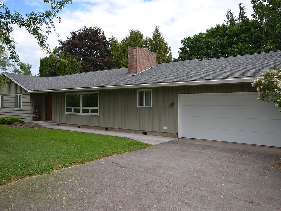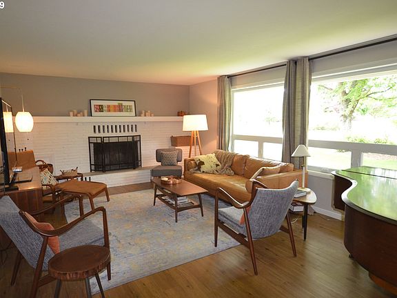 This charming Mid-Century rancher sits pretty on a combined 1.84 acre lot! The functional one-level layout offers 3 bds/2 bths, a living room w/ a fireplace, & a remodeled & generously sized kitchen.Natural light is abundant through the home! Attached two car garage.Mature landscaping surrounds the home, & the backyard is summer BBQ ready! The large barn offers horse stables & copious amounts of storage. Mt. Hood view from the front.