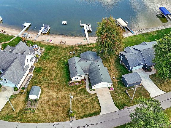 100 feet of Big Turkey Lake frontage, double lot with a sandy beach. Awesome space for the whole family to enjoy. Big Turkey Lake is a 450 Acre All Sports Lake from sun-up to sundown. This year round lake home features 1217 square feet of living space with 3 bedrooms, 2 full baths, and oversized 2 car attached garage. Enjoy morning coffee, warming sunrise and water views from the 22 x 10 enclosed patio wrapped in windows. Wide open floor plan stripped down to the studs in 2001. Completely updated electrical, plumbing, and all interior finishes. Siding installed 2011. Tear-off roof 2012. Well tank -2023, New appliances -2024, New furnace and air- 2025. Master bedroom has direct access to shared bathroom and private entry to the open concrete patio. Manicured lawn and landscaping. All interior/exterior furniture and appliances will remain with the home, also including the pier/posts/firepits. Lake season is ending in a hurry, get yourself lined up for next year. Call your favorite local Realtor and set up a private viewing today!