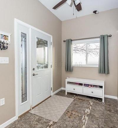 Great curb appeal! The large front-entry foyer addition w/heated tile flr and spacious closets, makes all the difference in this updated bi-level! Huge master bedroom fits King bed and all your furniture. 2nd bedroom, bath, dining area w/patio door, galley kitchen and big living room with large windows also on the upper floor. In the lower level, the family room has a gas fireplace; 2 more bedrooms, bath and laundry/utility/storage. Utility rm has access to the 3stall attached garage. Brand new black appliances in the kitchen and a new patio door. EXCELLENT outdoor space - maint-free rails on the oversize deck; concrete curb edging; fire pit; 1/3(A)acre yard w/no neighbors across the street. New 14x24(A) outbuilding with 2 roll-up doors. This home highlights the best in small-town living