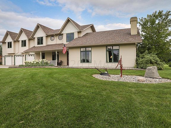 *Open House November 8th 1-4:30* NO SPECIALS!! There is also open enrollment for both DGF and Moorhead school district. This 5 bedroom, 3 bathroom, 1 acre home boasts over 4200 square feet of living space with a 3 stall insulated, heated oversized garage equipped with floor drain and a large bonus room above it. Enjoy the high ceilings, spindled staircase, 6 panel oak doors, and porcelain flooring complete with floor heat. Main level has the master suite with TWO walk in closets, a private living room with gas fireplace, formal dining room, laundry room & sink, half bath, ample storage, and remodeled kitchen. A newer gas furnace upstairs 2 newer A/C units keep the home a comfortable temperature. Prelisting inspection available. Schedule today!